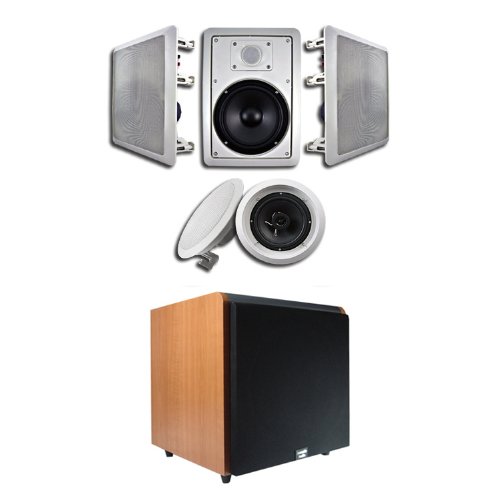 5.1 In-Wall/Ceiling 6.5" Speaker System (HT-65) w/Cherry 10" Powered Home Theater HD Series Sub (HDSUB-10C) by Acoustic Audio