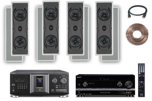 Sony 300-Disc Mega-Storage CD Changer / Player + Sony HD Digital Cinematic Sound 735 Watts 7.1 Channel 3D A/V Receiver with iPhone & iPod Playback + Yamaha Natural Sound Custom Install In-Wall 2-Way 150 watts Speaker (Set of 4) with 1" Titanium Dome Swivel Tweeter & Dual 6-1/2" Kevlar Cone Woofers + 100ft 16 AWG Speaker Wire + HDMI Cable