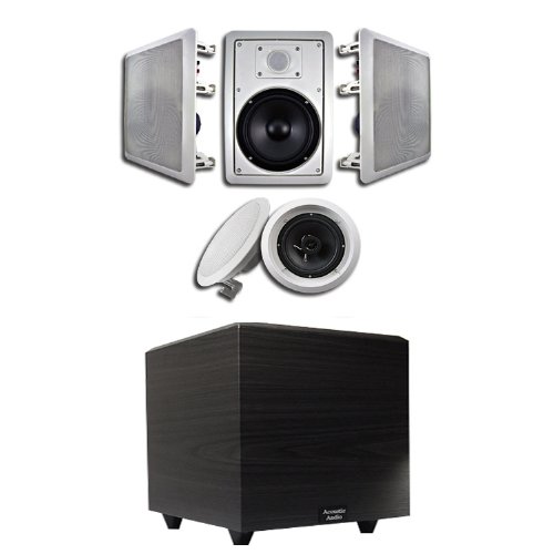Get special price (5) 6.5" In-Wall Speakers (HT-65) w/15" Powered Sub (PSW15) by Acoustic Audio with super saver shipping, today only