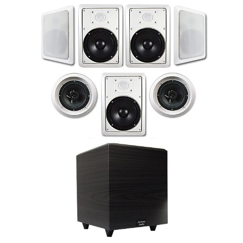 Get special price (7) 6.5" In-Wall Speakers (HT-67) w/10" Powered Sub RWSUB10 by Acoustic Audio with super saver shipping, today only