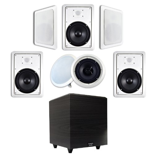 Get special price (7) 8" In-Wall Speakers (HT-87) w/10" Powered Sub (PSW10) by Acoustic Audio with super saver shipping, today only