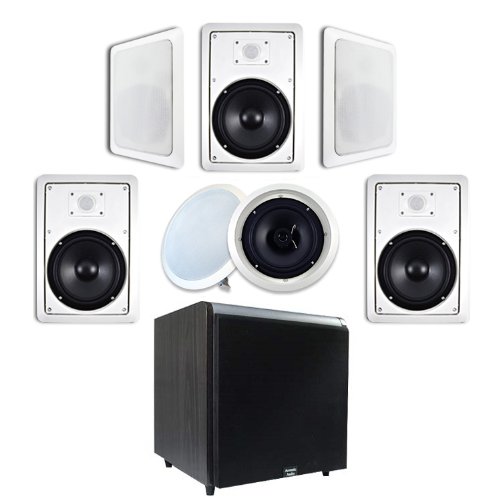 Compare price 7.1 In-Wall/Ceiling 8" Speaker System (HT-87) w/Black 10" Powered Home Theater HD Series Sub (HDSUB-10B) by Acoustic Audio and get discount with special price, now